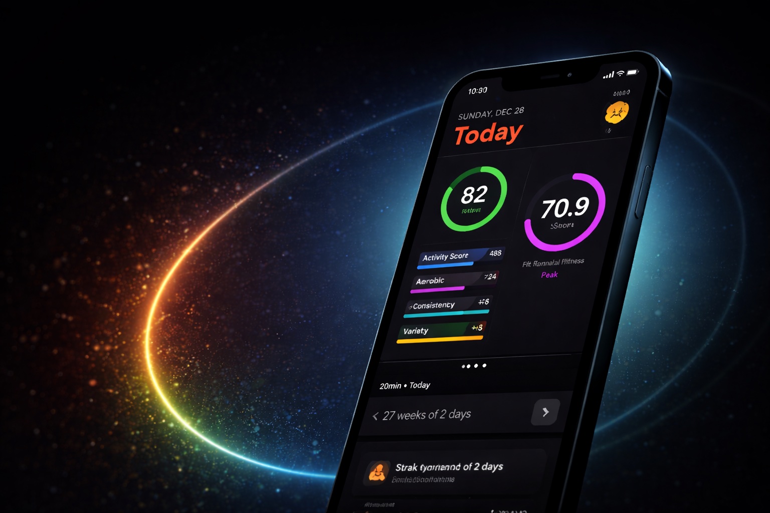 Not genetics or age—your effort, consistency, and balance. FitScore rewards showing up.